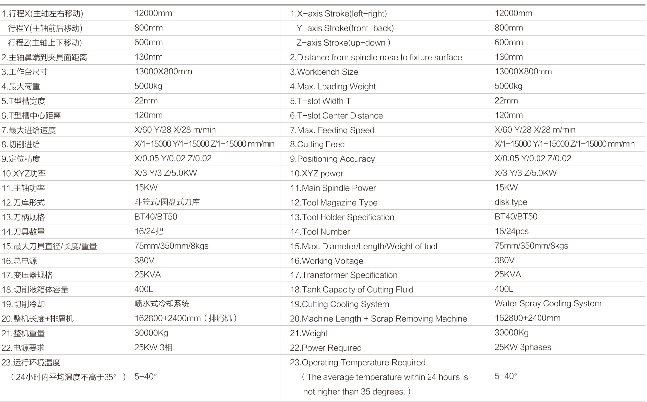 1、本機(jī)床身為焊接結(jié)構(gòu),運(yùn)動(dòng)部件(機(jī)頭,立柱)等全部采用高強(qiáng)度HT250鑄鐵材料,樹脂砂工藝,兩次時(shí)效處理消除應(yīng)力。