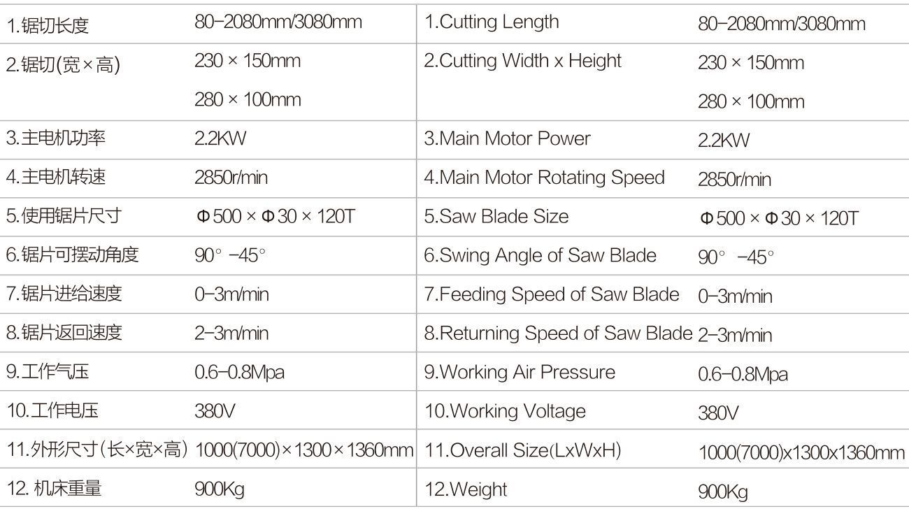 1,主要用于鋁合金型材的切割下料,亦可用于塑料型材的切割下料。使用硬質(zhì)合金鋸片, 外徑可達20″,線速度高,加工精度高。