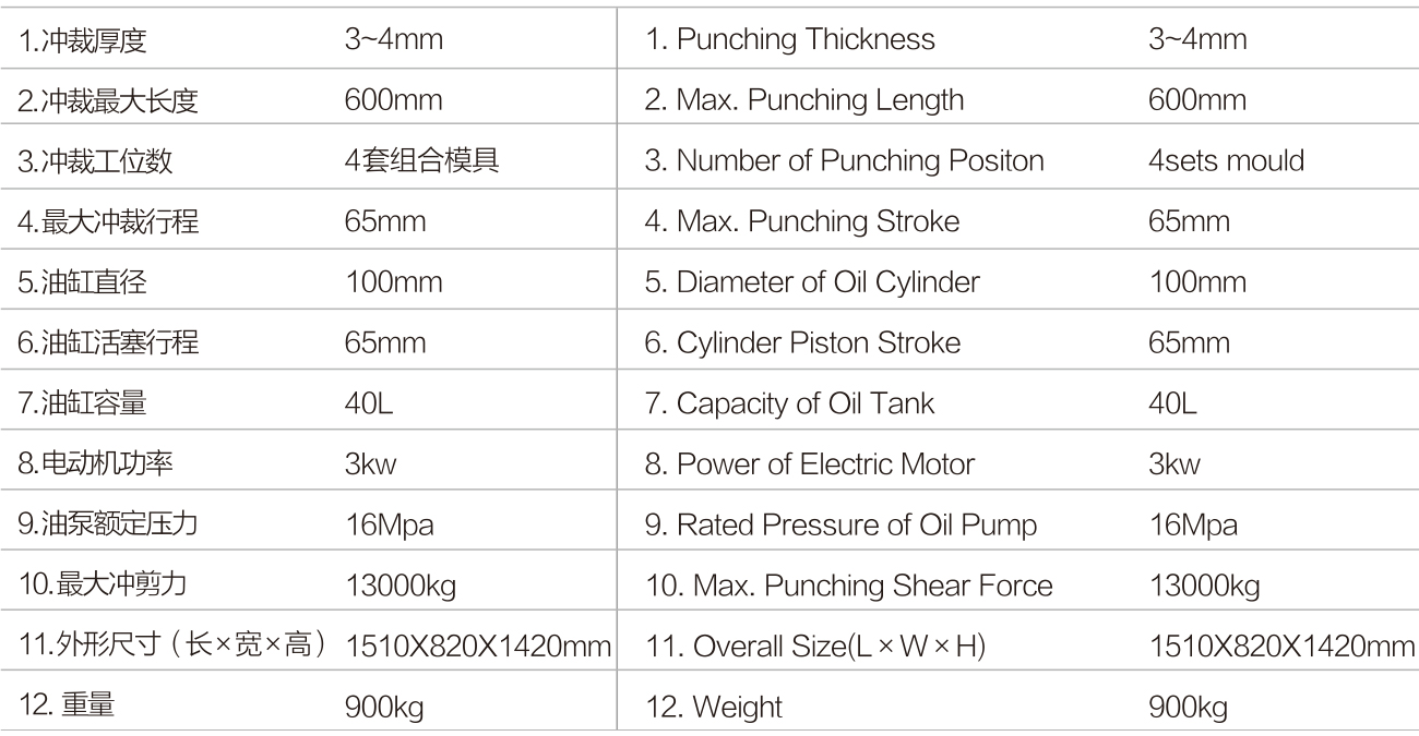 1,在該沖床的臺(tái)面上安裝各系列鋁型材組合模,可完成各種相應(yīng)推拉窗或平開窗鋁合金型材全部孔和缺口的沖裁加工。