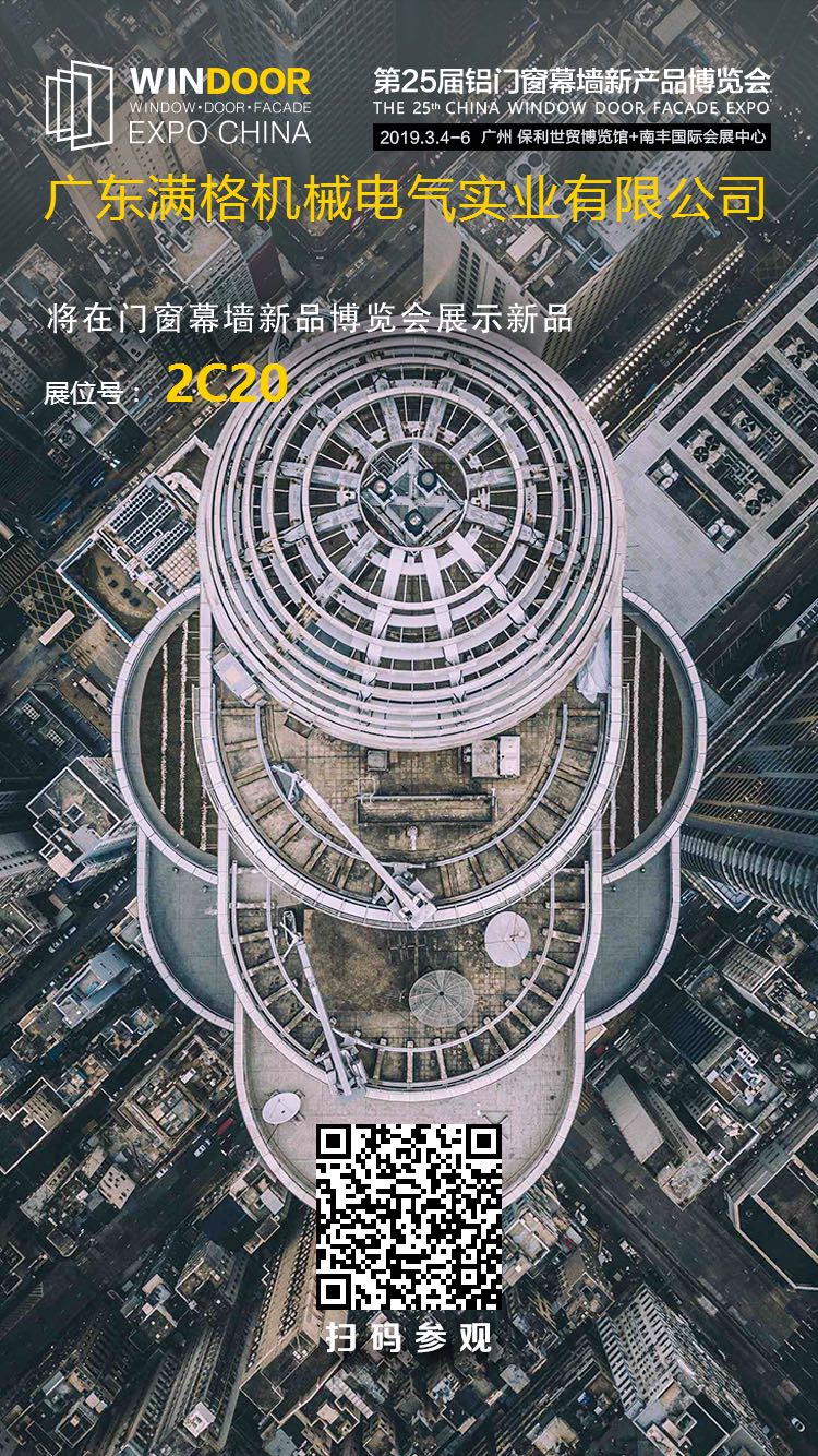 The 25th national aluminum doors and Windows curtain wall new products expo Exhibition date: 4-6 March 2019 (three days) Exhibition time: March 4; 09:30-17:00 March 5-6; 09:00-17:00 Exhibition location: guangzhou; Poly world trade expo; +; Nanfeng international convention and exhibition center Full space machinery booth: hall 2; 2 c20