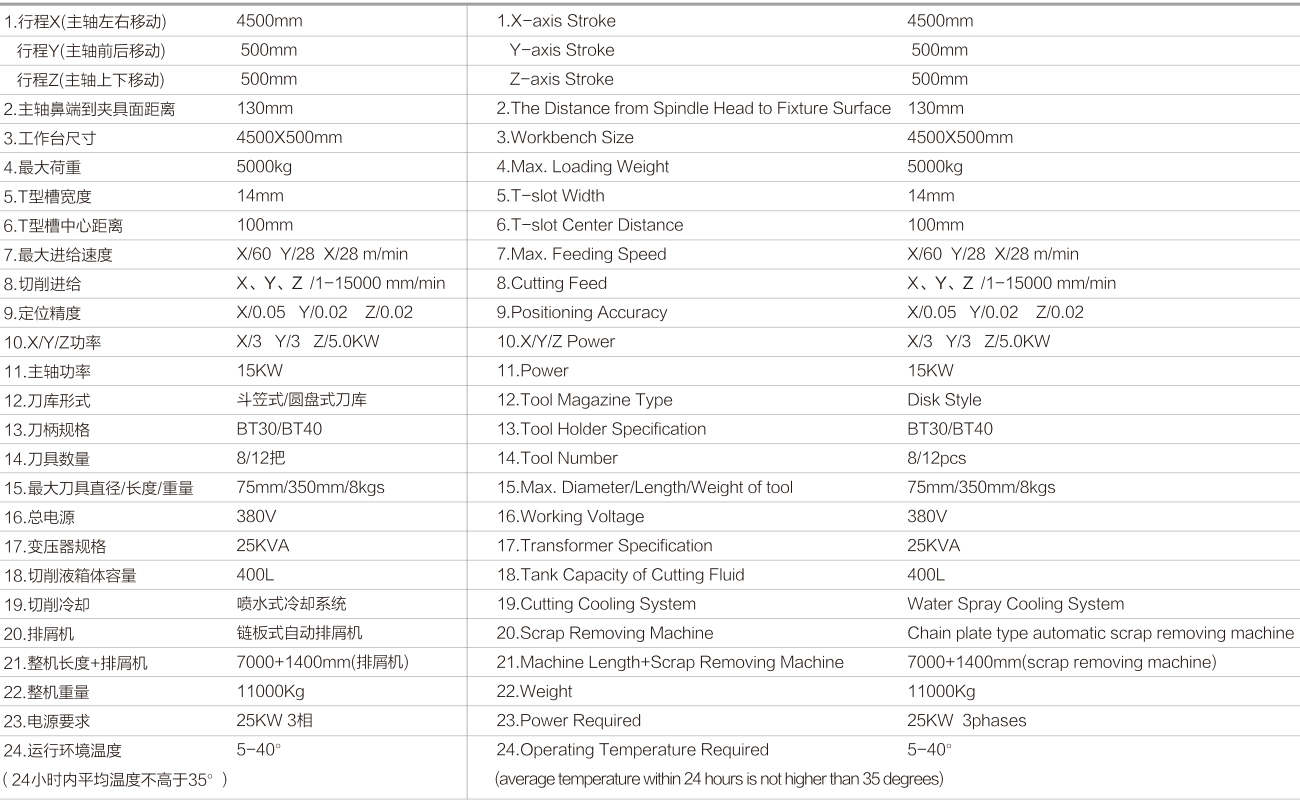 This machine is a special four-axis machine tool, which can process the products of automobile front and rear bumpers, large and small body bending beams, and long bending beams on rail transit vehicles. The whole four-axis machine head can be imported from Taiwan, which can meet the requirements of four-axis processing. suitable for processing various lengths of steel, copper, aluminum profile milling, drilling, chamfering, is an automated complex processing center. The system/servo adopts the complete set of Japanese FANUC scheme, which is more stable and reliable. BT30/BT40 can be adopted according to customers' needs, and the fuselage can be integrated with welding/casting (designed for the company's special casting, environmentally friendly/waterproof/stable/aseismic/safe). The knife can be changed automatically for about 5 seconds.