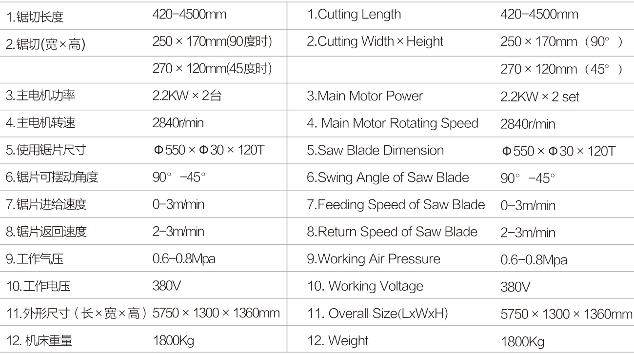 mainly used for aluminum alloy profile cutting material, can also be used for plastic profile cutting, using carbide saw blade, the outer diameter up to 20 ", high linear speed, high processing accuracy. When the machine tool is working, the two saw heads can be cut at the same time or cut separately. Saw blade can be placed into 90° ~ 45° Angle, this machine can be equipped with digital display device, so it is more suitable for cutting aluminum alloy profile.