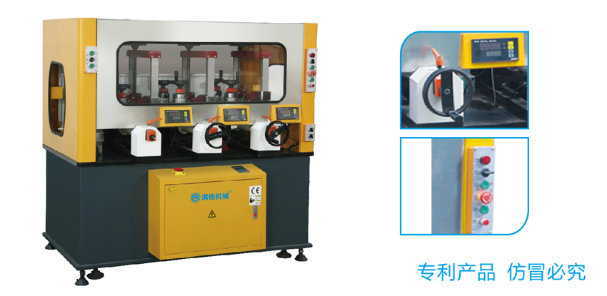 本機(jī)是將隔熱條與鋁合金型材緊密壓合的關(guān)鍵設(shè)備,由3對12個(gè)滾壓力盤將已經(jīng)穿好隔 熱條的型材槽口壓緊,以確保成品隔...