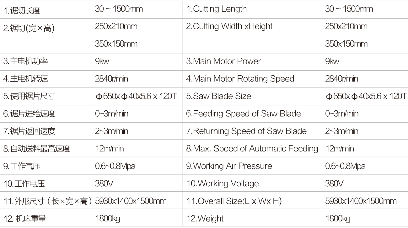 4、進(jìn)口電機(jī)直出,鋸片進(jìn)給采用液壓方式,運(yùn)行平穩(wěn),切割效果好。