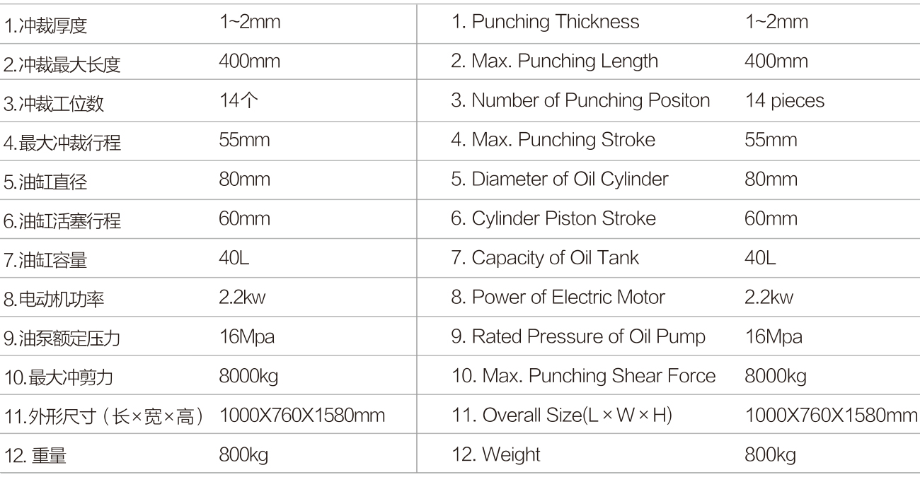 1,在該沖床的臺(tái)面上安裝各系列鋁型材組合模,可完成各種相應(yīng)推拉窗或平開窗鋁合金型材全部孔和缺口的沖裁加工。