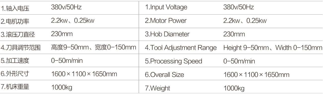本機(jī)是將隔熱條與鋁合金型材緊密壓合的關(guān)鍵設(shè)備,由3對(duì)12個(gè)滾壓力盤將已經(jīng)穿好隔 熱條的型材槽口壓緊,以確保成品隔熱型材的整體度。